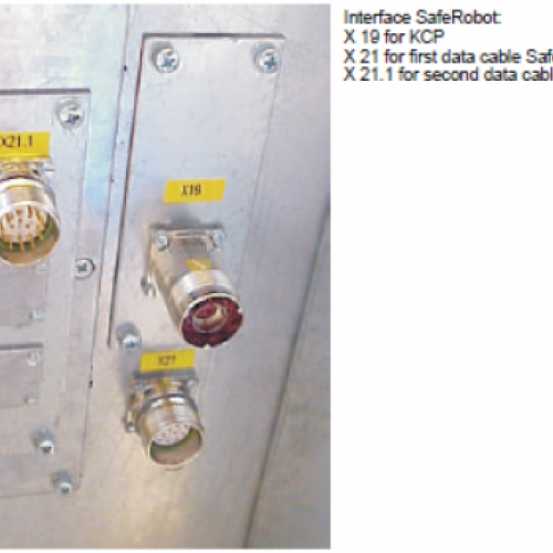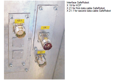 La interfaz SafeRobot en el armario de control ofrece una ranura adicional para el segundo cable de datos en el cable de conexión establecido Seguro, que es necesaria para SafeOperation.